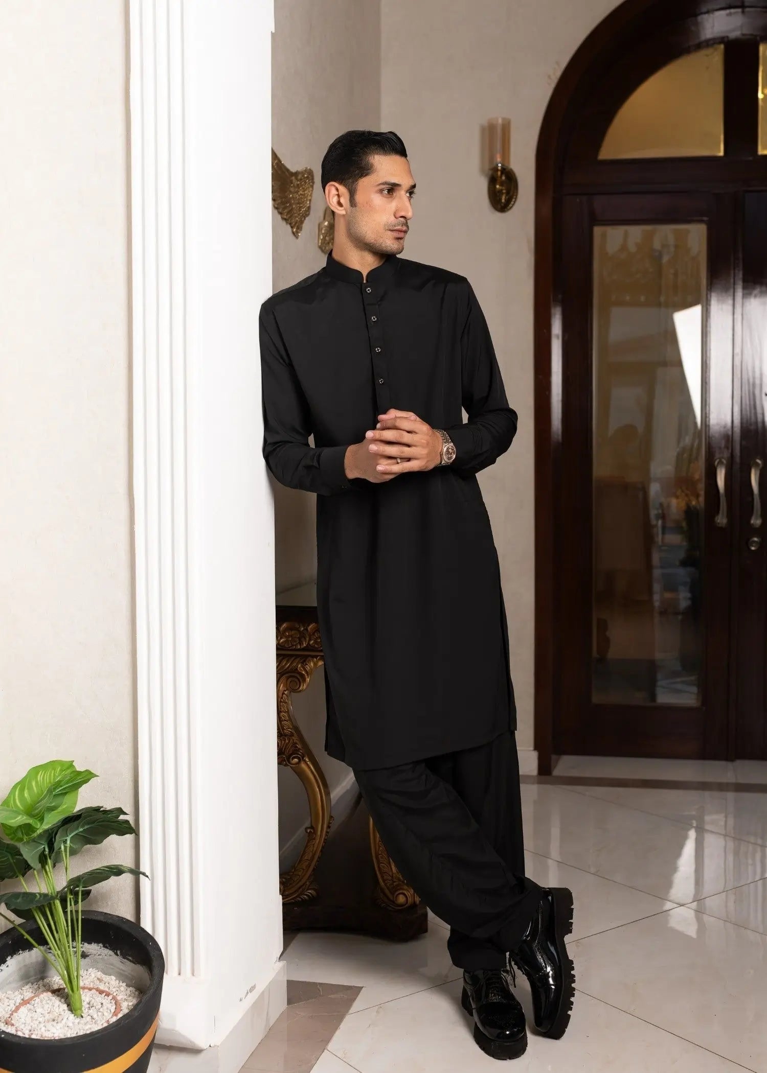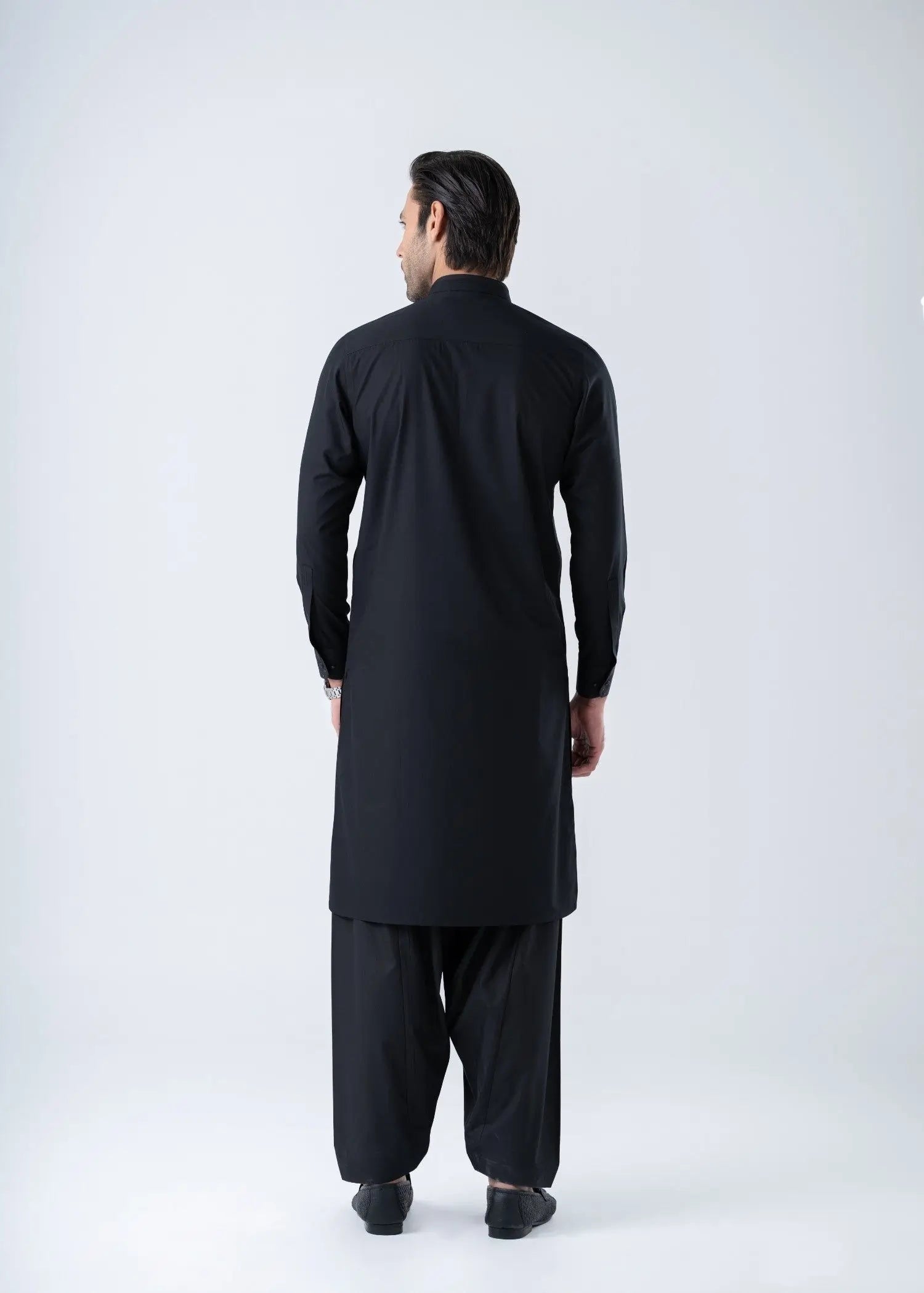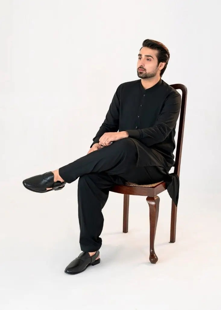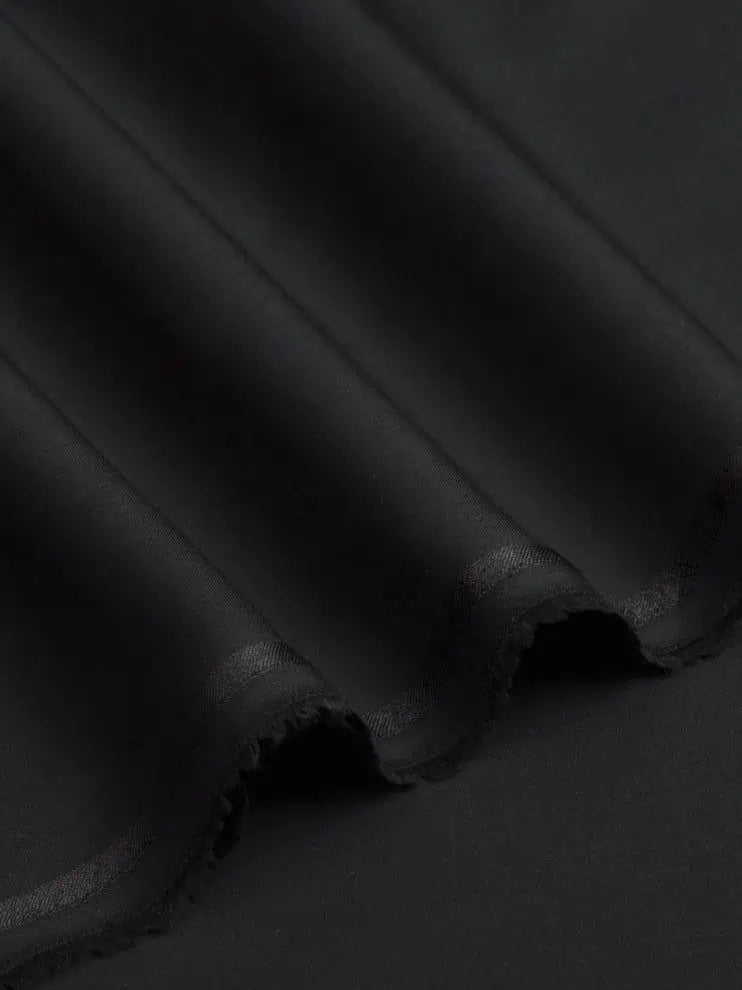 Quantum Black men's unstitched suits, where luxury meets comfort. These suits are made with a fabric quality that feels as smooth as butter, giving you a silky soft touch Jet Black that's incredibly cozy. Create your own unique style with these suits that offer both sophistication and comfort in every thread. Experience the perfect balance of elegance and ease with the QUANTUM BLACK.